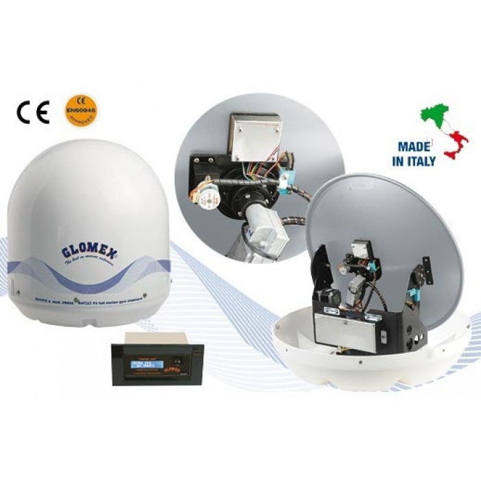 Mars 4 SKEW est le must de la gamme des antennes TV satellitaire Glomex. De dimensions et caractéristiques identiques à Mars 4 (diamètre du disque 600 mm/24’’ et possibilité de brancher jusqu’à 16 décodeurs indépendants sur le même bateau) elle est équipé de l’option skew qui garantié la meilleure qualité possible dans la réception du signal TV satellitaire. Mars 4 SKEW est équipée aussi d’un système performant de compensation du roulis et du tangage du bateau au moyen de stabilisateurs gyroscopiques (EGS), d’un axe rotatif multi coaxial (MCRJ) et d’une boîte de commutation multiple pour le raccordement de plusieurs décodeurs indépendants (4 sorties pour la commutation multiple, jusqu’à une quantité maximale de 16 par antenne). L’antenne peut tourner de manière infinie sur son axe sans qu’il soit nécessaire de dérouler le câble coaxial (SCC) et sans interrompre la réception. Mars 4 SKEW est pourvue d’un boîtier de contrôle qui peut être intégré dans le tableau électrique de bord. Sept satellites sont déjà disponibles sur l’unité de contrôle et viennent reconnus à travers le système NIT (Network Identification Table). Mars 4 SKEW est le choix optimal pour regarder la télévision en vacances ou en toutes conditions, aussi bien pendant la navigation qu’au mouillage, et même en présence de conditions météo non optimales.